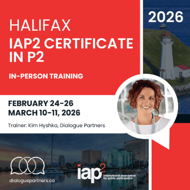 In-person delivery in Halifax. IAP2 Certificate in P2 3-course bundle.